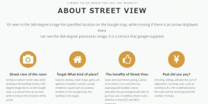 グーグルマップ上で指定した場所を360度画像で見たり、そこに矢印表示があれば移動しながら